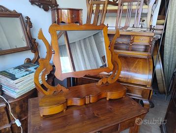 Specchio di medie dimensioni in noce. Oggetto di fine ottocento. Perfettamente ristrutturata da professionisti del settore con esperienza decennale. Lucidata a gomma lacca.