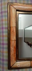 Specchio in osso marocchino, realizzato a mano con nickel silver dorato e intarsi in osso manuali, in arancione. Dimensioni: 26 cm x 35 cm x 2 cm (larghezza, altezza, spessore).