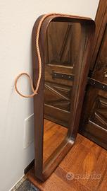 specchio rettangolare in teak anni 60 con corda misure 38x77 cm con qualche segno del tempo