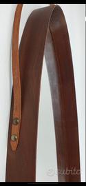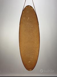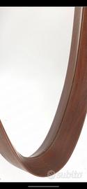 Lo specchio nell'immagine è un pezzo di design vintage italiano, identificato come uno specchio ovale in legno di teak degli anni '50. Questo modello si distingue per la sua cornice profonda ed elegante in teak scuro, tipica del modernariato italiano di metà secolo. Pezzi simili, spesso caratterizzati da forme organiche e materiali caldi come il legno massello o il cuoio, sono molto ricercati dai collezionisti e dagli amanti del design d'interni. Caratteristiche e Prezzi Materiale: Legno di teak con una finitura scura e naturale. Epoca: Anni '50 - '60. Prezzo indicativo: In base alle condizioni e alla rarità, modelli originali di questo tipo possono variare tra i 750 € e i 915 €