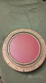 Specchio in oblò con forma tondeggiante, ribattini in ottone adornano la cornice , grossi dadi a galletto serrano torciglioni ermeticamente.