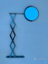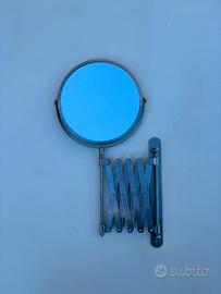 Vendo per inutilizzo specchio estendibile da fissare a parete. Specchio da entrambi i lati, uno con ingrandimento. Specchio diametro 16cm Altrzza totale 38cm Estensione fino a 53cm