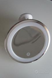 Vendo specchio ingrandimento 10X, E' dotato di luce a led circolare lungo il bordo che può essere regolata tramite pulsante. Ha una potente ventosa. E' girevole a 360°. Completa della scatola, mai usato.