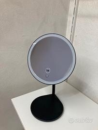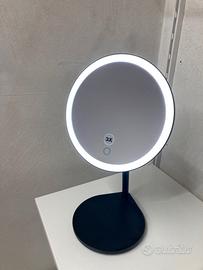 Vendo specchio ingranditore X3 supporto da tavolo nero opaco, ventosa per fissaggio a specchio e/o vetro, interruttore touch on/off con cambio colore e funzione dimmer temperatura colore Triplewhite 3000-4000 e 6000 K. Batteria lunga durata con ricarica USB. Diametro lente 210 mm H=384 mm base 184 mm