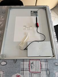Vendo bellissimo specchio dal design moderno ed elegante, perfetto per bagno o camera da letto. Caratteristiche Principali: • 💡 Luci LED integrate: Bande luminose laterali per un'illuminazione perfetta con tre tonalità di luce e tre intensità di luce. • 👉 Tecnologia Touch: Accensione e controllo delle luci direttamente con un tocco sullo specchio. No interruttori a vista. • Stato: Ottimo, perfettamente funzionante e privo di difetti.