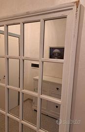 Specchio a quadroni in legno decapato bianco. Altezza 175 cm, larghezza 100 cm