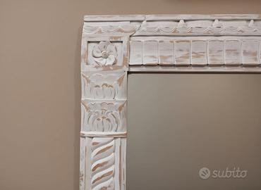 SPECCHIO LEGNO RUSTICO SBIANCATO INTAGLIATO A MANO