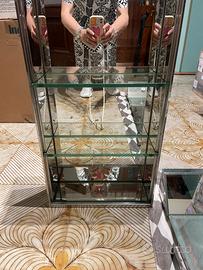 Antonio Lupi per Crystal Luxor dimensioni 104 x 70, lo specchio ha quattropunti luci e un pomello, marchiato Lupi (come da foto) per regolare l intensità della luce oltre all accensione e spegnimento. Inoltre è corredato di vari accessori (2 porta asciugamani, portasapone e porta bicchiere x spazzolini) ed inoltre sempre della stessa linea un mobiletto a giorno con mensoline in cristallo (foto 2)