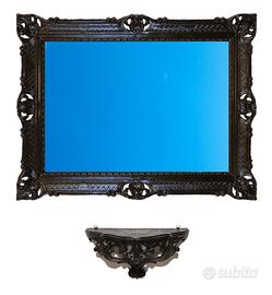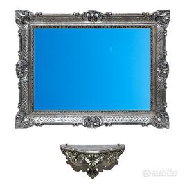 Set composto da specchio grande + consolle finto vintage in stile barocco, interamente realizzati in resina sintetica con plastica di riciclo.
