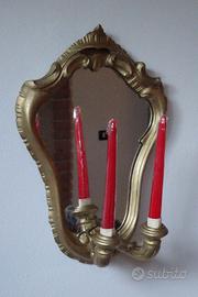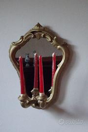 Specchio vintage , aplique con candeliere a due luci, con cornice in legno colore dorato, dimensioni h=41x27x17 Ritiro gratuito presso il venditore.