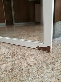 Cornice bianca legno massello, in basso a destra saltata vernice di facile ritocco, due ganci in ferro per il fissaggio ,non è ikea. 110 x 62 cm.