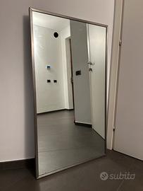 Specchio moderno in cristallo spessore 5mm e acciaio inox. Forato e predisposto per luce Flos mini glo-ball. Misure : 70x120x3 cm