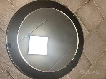 Specchio bicolore formato da due cerchi concentrici , dei quali l’anello esterno e’ di colore marrone/brunito, sempre pero’ con superficie soecchio. Diametro totale 57 cm. Diametro specchio centrale ‘chiaro’ 53 cm. N.B. lo specchio e’ abbastanza pesante. Prezzo non trattabile.