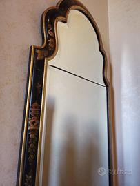 Specchio orientale in legno di grandi dimensioni intarsiato con motivi orientali alto cm 130 e largo cm 65
