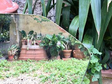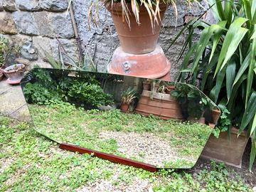 Specchio orizzontale sagomato vintage anni '50 con base in legno di mogano. Misure cm 145x60, in perfetto stato. Ritiro a mano.