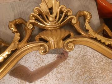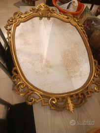 specchio come da foto cornice dorata in legno molto bello ,con specchio vecchio ossidato favoloso lunghezza massima 115cm , larghezza massima 80cm