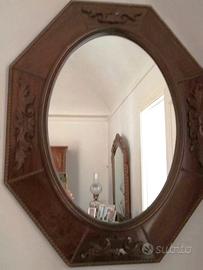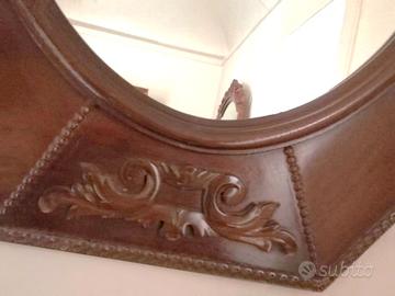 Vendo specchio ottagonale in legno massello intarsiato. In foto il dettaglio del decoro. Condizione: ottima. Non disponibile alla spedizione, solo ritiro in loco. Per maggiori informazioni contattare il 3394915884.