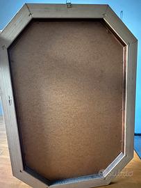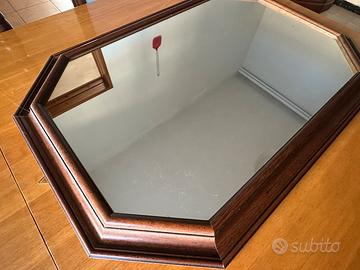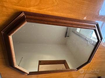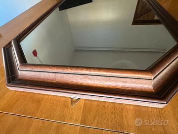 Specchio ottogonale vintage con cornice intagliata in legno di noce. Condizioni pari a nuove. No segni di rovina e di usura. Ritiro in zona.
