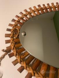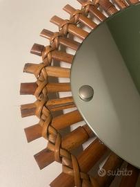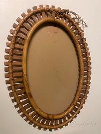 Specchio ovale in bambù italiano prodotto negli anni 50. Produzione Bonacina.
