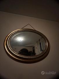 Specchio ovale da parete con cornice in legno color oro/dorato, stile classico/vintage.