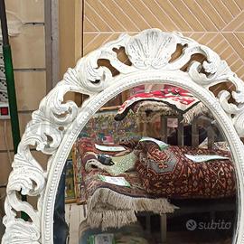 SPECCHIO OVALE INTAGLIATO BIANCO. 73 X 98 CM. BUONE CONDIZIONI GENERALI MERCATINO USATO ROMA GARBATELLA