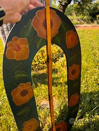 Specchio vintage ovale con motivo floreale in ottime condizioni 80x41