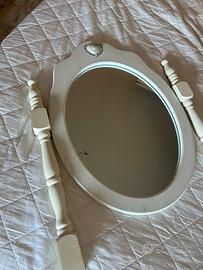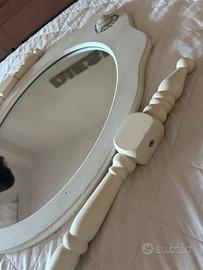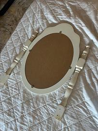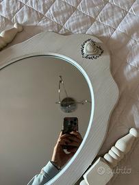 Vendo delizioso specchio ovale in stile shabby chic, colore bianco, con cornice in legno e decorazione a cuore nella parte superiore.