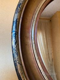 Specchio ovale vintage con cornice in legno patinato 90 l x 76 h Foto e informazioni su richiesta
