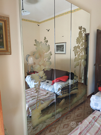 Pannello a specchio lavorato artigianalmente con procedimento a sabbia, disegno paesaggio, retroilluminato vendo cambio arredamento.