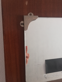 Lo specchio è grande ed è ancora attaccato all'anta, può essere utilizzato così oppure può essere montato su un altro mobile.