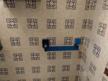specchio per bagno con luci, accessori portasciugamani e un mobiletto in cristallo blu ritirabile in zona eur-mostacciano.