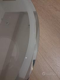 Specchio rotondo. Diametro 80 cm. Con luce led. Inrensità e tonalità della luce regolabili tramite pulsante touch. Dotato di sistema anti appannamento.