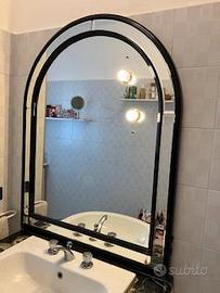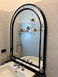 Specchio da bagno Valentino con cornice in legno laccato nero lucido , dimensioni Altezza 1 metro e 18 cm , larghezza 93 cm , spessore 4 cm , ottimo stato