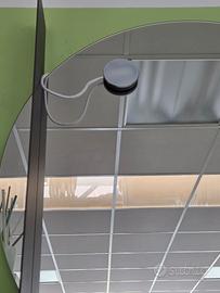 Specchio tondo diametro con mensola in metallo integrata colore piombo. Faretto a LED con calamità. Nuovo da esposizione