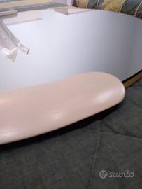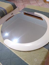 Specchio per bagno vintage anni 70. Cornice in legno laccato bianco. Diametro 80 cm. Completo di gancio per appenderlo a muro