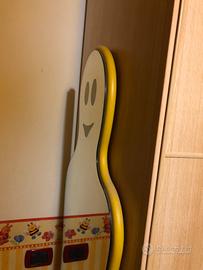 Specchio con sagoma fantasmino per CAMERETTE con bordino di colore giallo Misure : H=150 cm L= 55 cm S= 3 cm