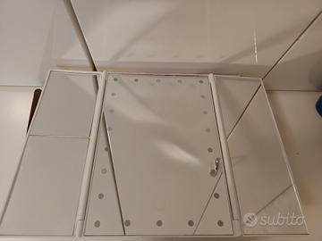 Specchio con luci a LED. Ingrandimento X2 e X3. Comando luce touch. 22 luci a LED. Inclinazione regolabile a 180°.