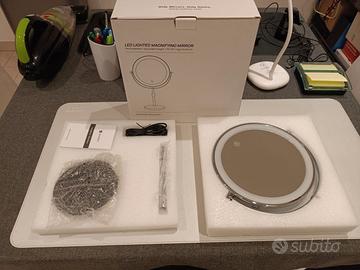 Vendo specchio per make up mai utilizzato e con le seguenti caratteristiche: - marca OMIRO; - diametro 21.5 cm; - doppia faccia con ingrandimento 3X e 10X; - illuminazione a LED su entrambe le facce; - comando touch per variare sia il colore della luce (fredda, calda e naturale) che l'intensità; - base circolare con diametro di 13,5 cm e fondo antiscivolo; - asta telescopica per regolare l'altezza; - rotazione a 360° sull'asse orizzontale per modificare l'inclinazione; - batteria da 5000 mAh ricaricabile tramite cavetto USB e presa type-C. Prezzo 30 euro non trattabile (su Amazon costa 75 euro) con ritiro a mano o spedizione tramite TuttoSubito.
