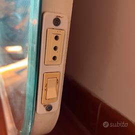Vendo specchio per mobile lavandino con luci funzionanti. Misure altezza 110 cm larghezza 88 cm Lievi danni come da foto sul fondo e intorno alle luci Interruttore e presa funzionanti No perditempo Trattabile