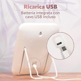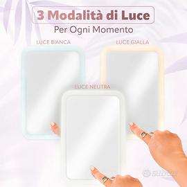 Vendo specchio per trucco con illuminazione led tre colori. tasto accensione touch. Ricaricabile con cavo incluso. Nuovo mai usato. È stato regalato a mia moglie ma non lo usa