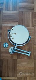 Specchio per trucco e ingranditore. Specchio girevole e con finiture in acciaio. Lato supporto parete estensibile. In dotazione anche le 2 viti. Vendo per inutilizzo. Specchio in ottima condizione. Disponibili altre fotografie dell'articolo.