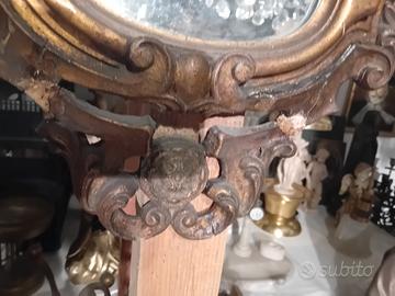 antico specchio in legno con difetti visibili ma in buono stato misure : H 82 X L 50 ( cornice esterna)