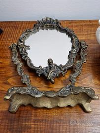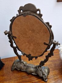 vendo specchio con cornice in metallo, peltro. Pieghevole, Pesante. Alto circa 30 cm e largo 15 circa.
