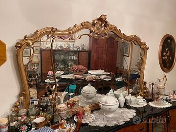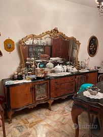 specchio più buffet, tavolo e vetrina vintage