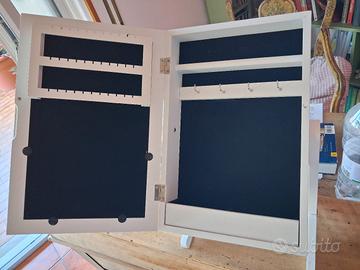 specchio portagioie bianco domicilio legno, pieghevole, immacolato nuovo. 30x20 cm circa. da cameretta o da bagno.