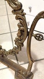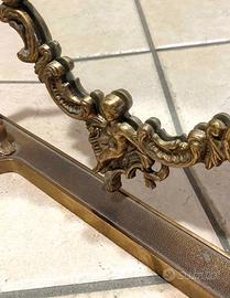 Specchio Psiche basculante da tavolo in ottone vintage; probabilmente risalente agli anni ’50. In stile liberty o floreale ed eclettico: presenta una cornice ovale decorata con angeli (putti) e conchiglie. In eccellenti condizioni, anche lo specchio.