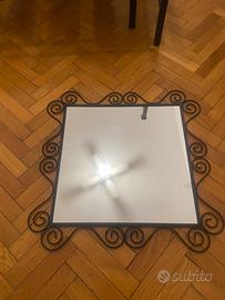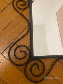 Specchio quadrato in ferro nero battuto dimensioni di ingombro totale 75 x 75 Interno specchio 56x 56 Ottime condizioni Ritiro a carico acquirente