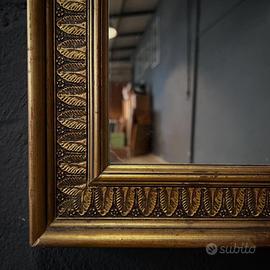 Specchio da parete rettangolare con cornice dorata finemente decorata, risalente ai primi anni del ‘900. La cornice è realizzata in legno intagliato con motivo a foglie d’acanto. La superficie riflettente non presenta nessuna crepa o rottura. Dotato di asole per l’affissione a muro, anche in orizzontale. Misure: 84cm x 128cm Pagina instagram Antikamente ☎️ 3382547476 📦 Spedizioni in tutta Europa 🚚 Consegna a domicilio in tutta Italia 🔔 Tutti gli oggetti proposti sono visibili su appuntamento presso il nostro magazzino