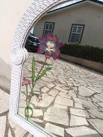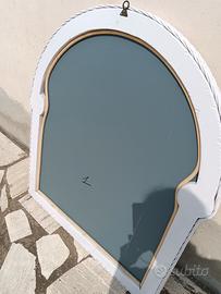 Vendo specchio con cornice in legno bianca, lievemente ritoccata come in foto, con fiore serigrafato. Misure L 85 x 95 H. Zona Monteporzio / Finocchio