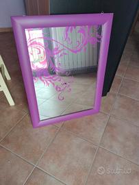 Specchio con cornice e decorazione (adesiva) viola. Misure 82x61 buone condizioni